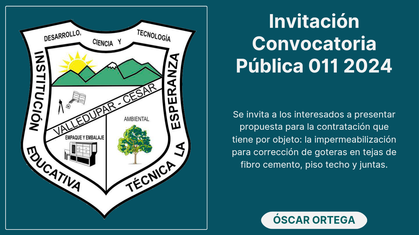 Se invita a los interesados a presentar propuesta para la contratación que tiene por objeto: la impermeabilización para corrección de goteras en tejas de fibro cemento, piso techo y juntas.