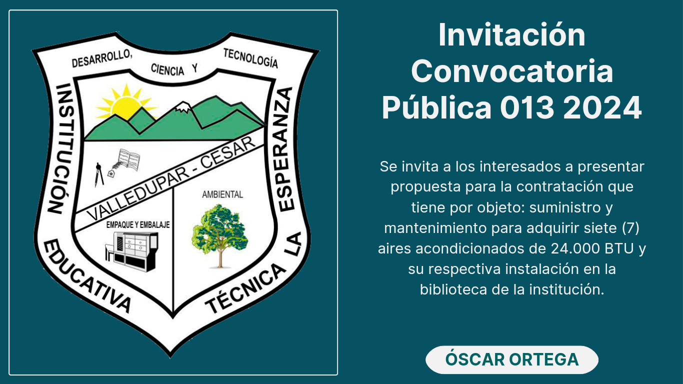 Se invita a los interesados a presentar propuesta para la contratación que tiene por objeto: suministro y mantemiento para adquirir siete (7) aires acondicionados de 24.000 BTU y su respectiva instalación en la biblioteca de la institución.